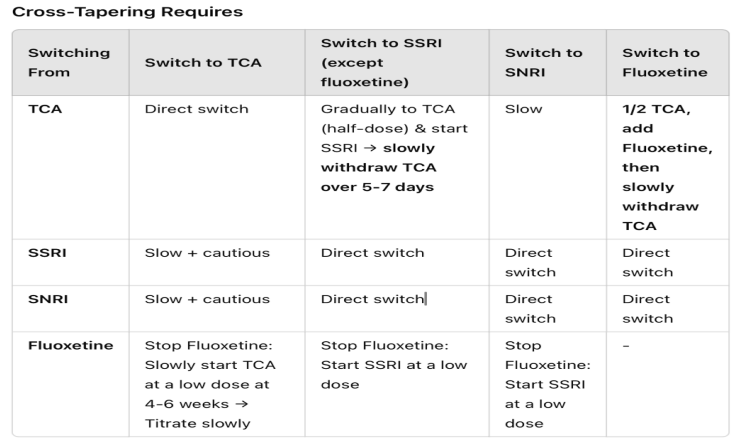 • Mirtazapine & Trazadone require cross-tapering cautiously