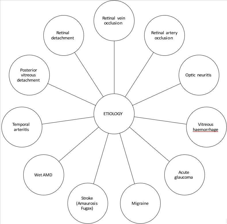 - Sudden visual field loss: acute loss of vision in part or all visual field