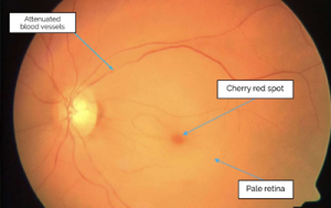 - Symptoms – central VF drop, sudden & irreversible